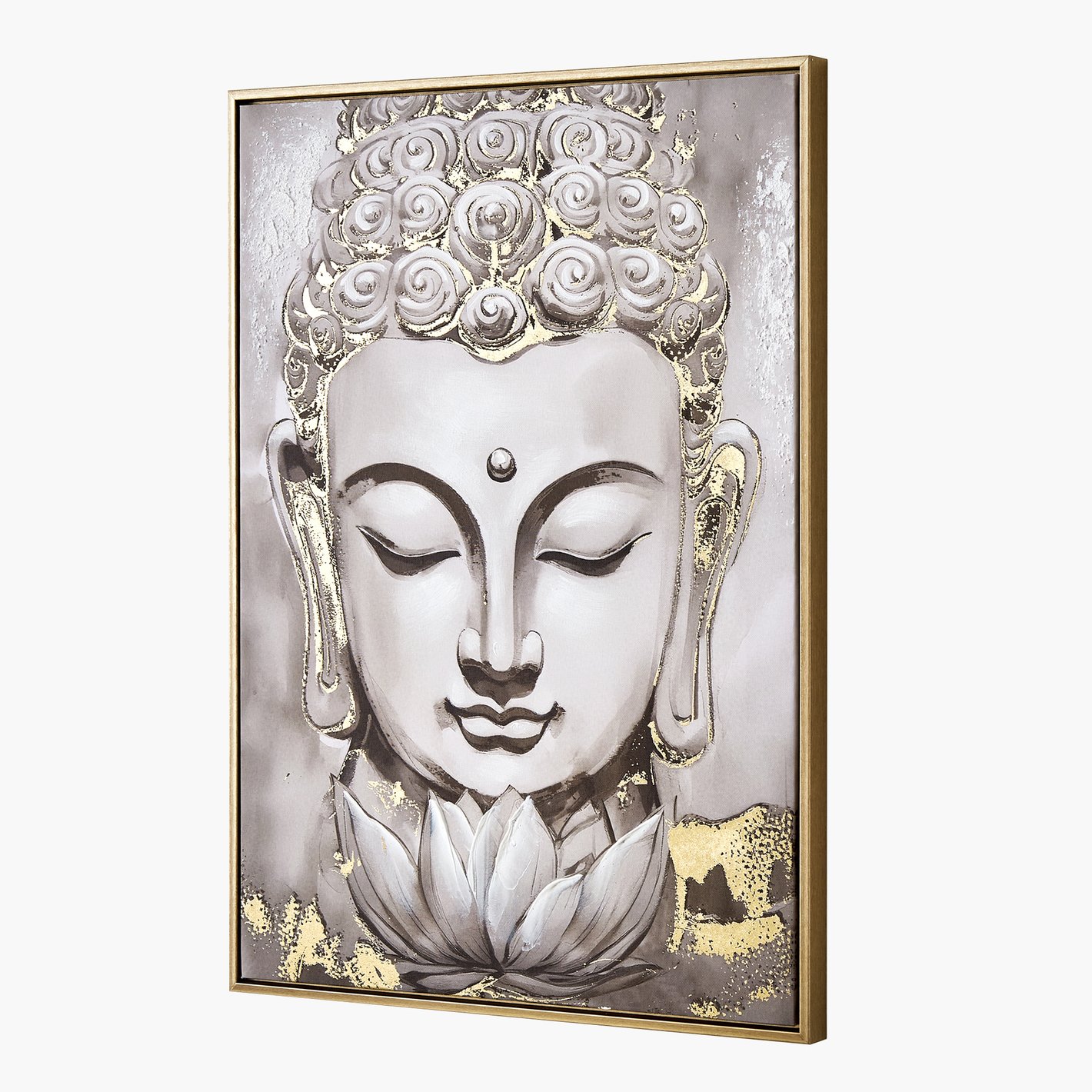 Showcase this hand painted buddha design in a beautifully crafted picture frame made from durable canvas and elegant gold PS. This sophisticated frame adds charm and strength to any room, enhancing your home decor.